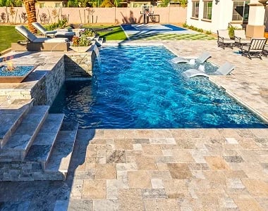 You can also choose to go with french pattern antique style and can select matching pool coping tiles in Drop Face (Drop Down), Tumbled and Bullnose styles.