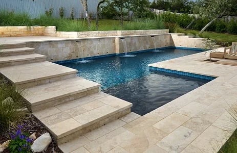 Ivory Travertine Pool Coping Tumbled is safe non-slippery and a perfect choice for protecting the pool edges.