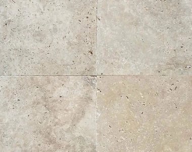 Standard Grade Ivory Travertine Pavers and Tiles tumbled and unfilled have beautiful blends of cream and white colours enriched with light caramel highlights. Travertine contains natural holes in the surface that provides an extraordinary non slip texture to the finish. However if desired the holes can be easily filled at the time of grouting with our colour matched travertine grout.