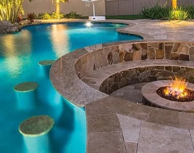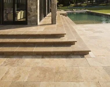 Noce Travertine Bullnose Pool Coping is safe non-slippery and a perfect choice for protecting the pool edges.