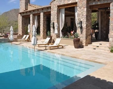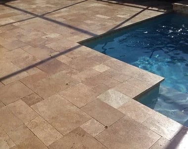 Noce Travertine Tumbled pool Coping is safe non-slippery and a perfect choice for protecting the pool edges.