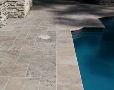 Available Types: Oyster Silver Travertine Tiles & Pavers, Oyster Silver Travertine French Pattern, Oyster Silver Travertine Pool Coping Tumbled, Oyster Silver Travertine Pool Coping Drop Face