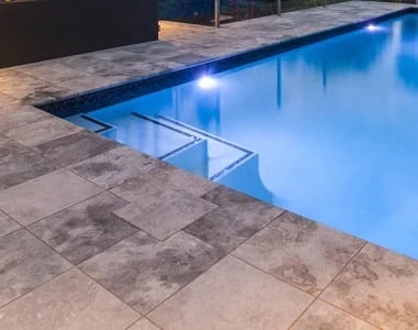 Oyster Silver Travertine Bullnose Pool Coping is safe non-slippery and a perfect choice for protecting the pool edges.